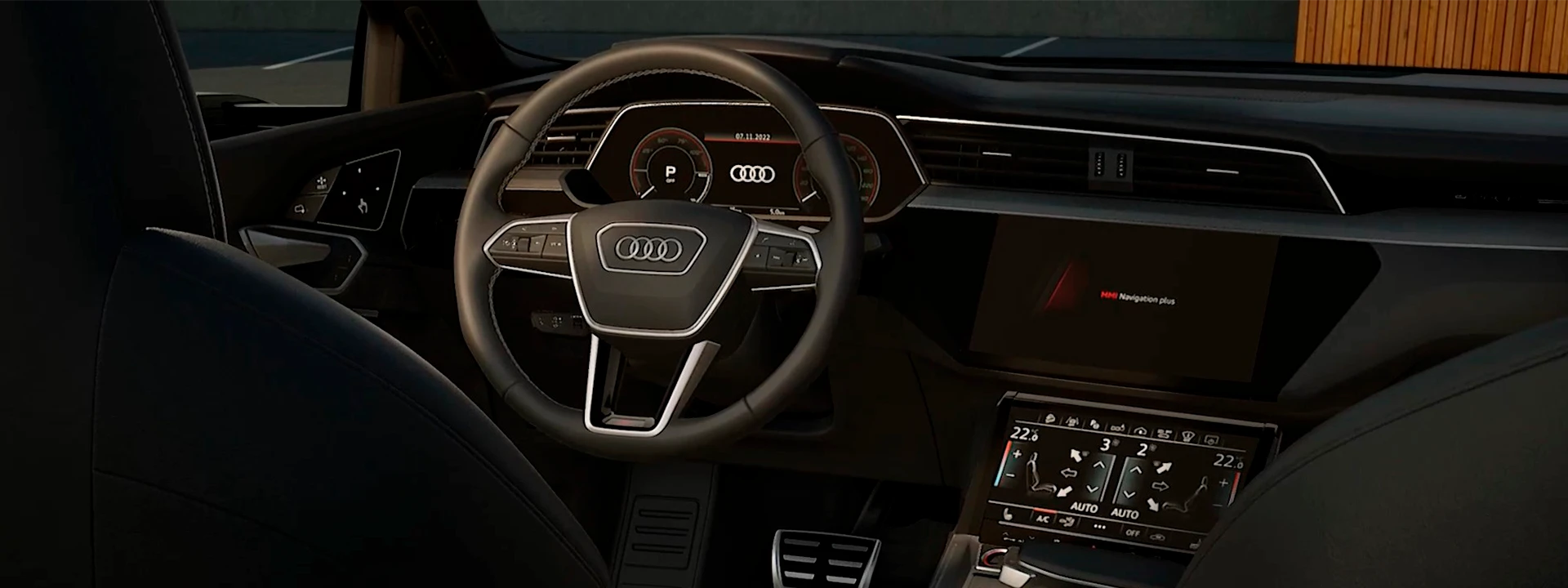 Carregamento rápido agora é possível com até 170 kW em estações de carregamento com alta potência. Como o planejador de rota e-tron, as paradas de carregamento são integradas na orientação do percurso de forma que a elevada capacidade de carregamento possa ser utilizada de forma eficaz.